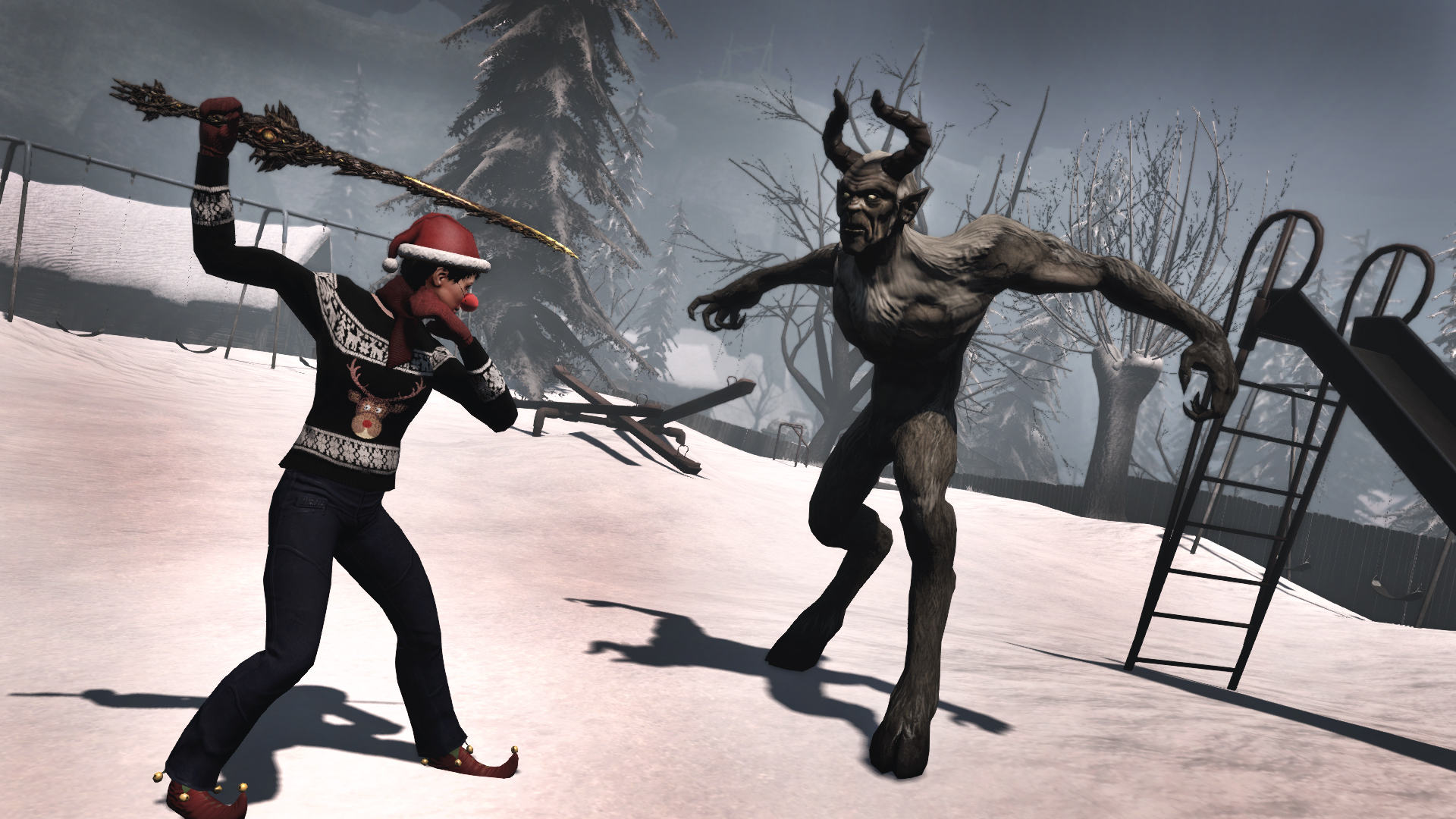 The brutal Krampus is scouring the land for people to punish, but if you are clever you can turn the tables on the Krampus and prevent him from escaping your wrath. The Krampus opens a portal to Niflheim itself, the land of frost and ice, and you can enter this terrible place if you dare.